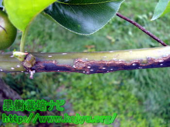 果樹(梨)の胴枯病について ホームページの更新 2009年06月04日 ホームページ(果樹栽培ナビ)にて梨の木に発生する胴枯病を紹介しました。 耐性の弱い幸水では、病気の進行が早く、手遅れになることもありますが、この時期5~6月には、冬季に感染した箇所が判り易く、早期に対応することができます。 大切な果樹を枯らさないように、予防は当然として、早期発見と処置を行いましょう・・・ 胴枯病は、 梨の病気被害と対策>胴枯病 https://www.kajyu.org/byouki-nasi-dougare.html 胴枯病の予防については、 果樹の栽培方法(梨の育て方)>保護剤の使用 https://www.kajyu.org/saibai-nasi-hogozai.html <ランキングに参加してます。> お帰りの際、応援クリックお願いします。 <いつもありがとうございます。>