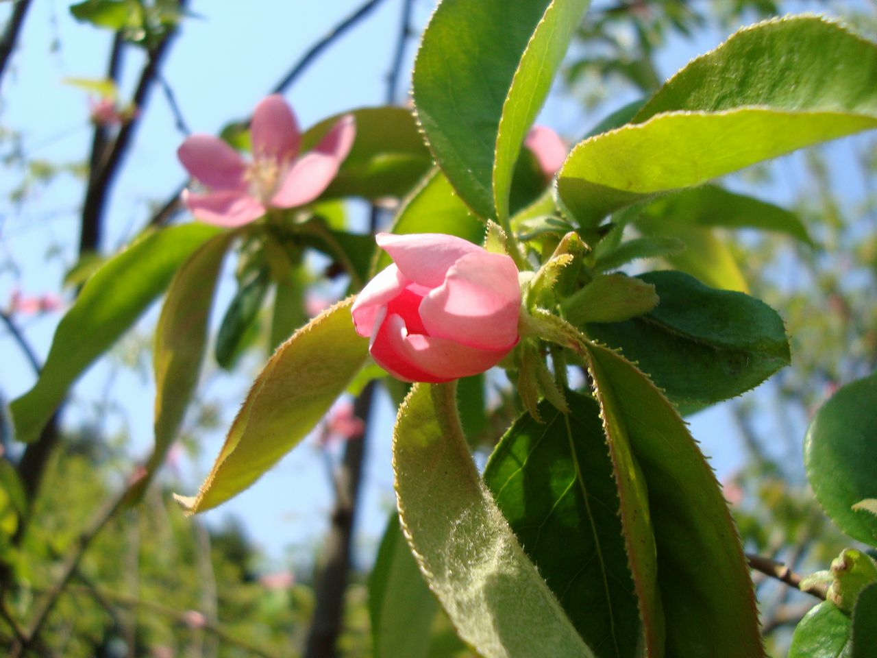かりんが満開 果樹園の栽培 2009年04月29日 花梨の花が咲き、満開になりました。 写真は、ピンクの花です。白じゃないの?と疑問に思われた方がいたら、それはマルメロの花です。 花梨のそっくりさんで、マルメロというのがあり、花が白いらしいです。地域によっては、マルメロも花梨というらしいですが・・・